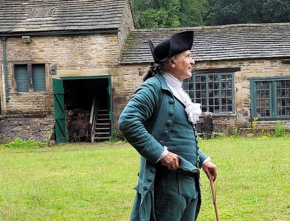 In July we got to recreate the discharged 43rd soldier, Edward Rose, at an Industrial Heritage site. Hat by the talented Thomas Whitfield, suit and cravat were made by Roma Webb following a pattern created by Henry Cook which was drafted from an original 1770's Rhode Island linen coat. Shoes are by Andy Burke and the hose are from the Quartermasterie. The cane is an original. The lathe is a replica of that set down in the Mechanick Exercises of Joseph Moxon - researched and built by Graham Webb. We are delighted to share the pictures and the experimentation with three or six top buttons of the waistcoat left open. We're leaning towards three ourselves.
